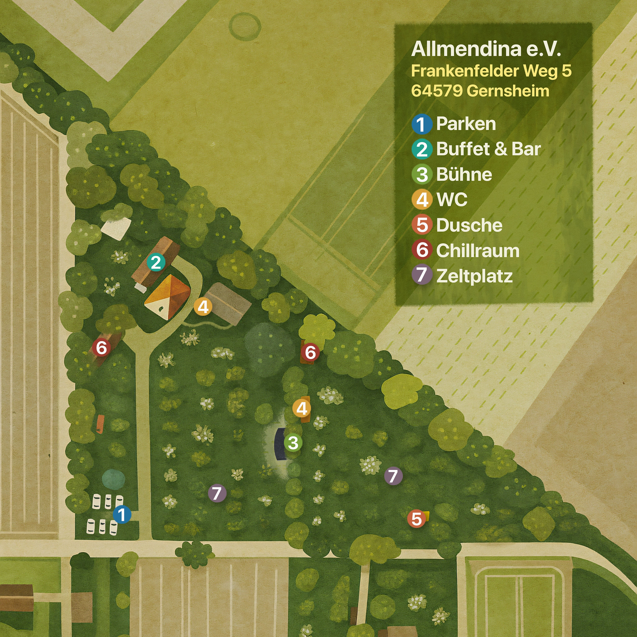 Der Hof im Allmendfeld liegt am Rand des Gernsheimer Stadtteils Allmendfeld – mitten im Hessischen Ried, umgeben von Feldern, Landwirtschaft und in unmittelbarer Nähe des Rheins. Hier, wo die Ebenen des Rieds in weitem Licht liegen, entsteht ein Ort, an dem Kunst, Ökologie und gemeinschaftliches Handeln zusammenfinden.